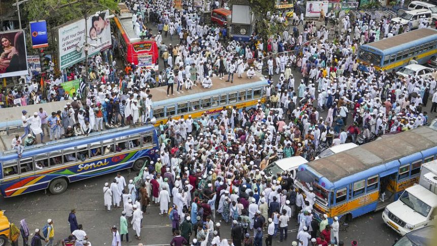 ওয়াকফ আইনের প্রতিবাদে কলকাতার রাস্তায় নেমে আসেন হাজার-হাজার মুসলিম জনতা , বৃহস্পতিবার, ১০ এপ্রিল, ২০২৫। ছবি: পিটিআই