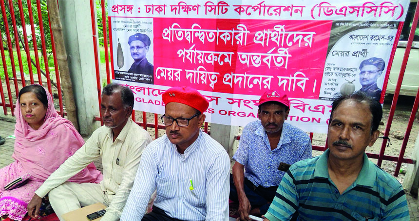 জুলাই আন্দোলন পরবর্তীতে অন্তর্বর্তীকালীন সরকার প্রতিষ্ঠার পরক্ষণেই ঢাকা দক্ষিণ সিটি করপোরেশন (ডিএসসিসি) মেয়র পদ নিয়ে উদ্ভূত পরিস্থিতিতে উদ্বেগ প্রকাশ করেছেন বিগত দুই নির্বাচনে প্রতিদ্বন্দ্বিতাকারী মেয়র প্রার্থী বাংলাদেশ মেস সংঘের (বিএমও) মহাসচিব মো. আকতারুজ্জামান ওরফে আয়াতুল্লাহ। রবিবার (১ জুন) সকালে জাতীয় প্রেস ক্লাবের সামনে মেস সংঘের উদ্যোগে অবস্থান কর্মসূচি পালিত হয়েছে। এতে সংহতি প্রকাশ করে বক্তব্য রাখেন, নতুনধারা বাংলাদেশের চেয়ারম্যান মোমিন মেহেদী, ঢাকা মহানগর সদস্য সচিব শাকিল আহমেদ, শহীদুন্নবী ডাবলুসহ অন্যান্য মেয়র প্রার্থীরা। অবস্থান কর্মসূচিতে মেস সংঘের সভাপতি হাবিবুর রহমান মনি সভাপতিত্ব করেন।