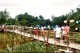 দীর্ঘদিন ধরেও স্থায়ী সেতু নির্মাণ না হওয়ায় সুনামগঞ্জের তাহিরপুরে গ্রামবাসীর উদ্যোগে ভাঙারখাল…