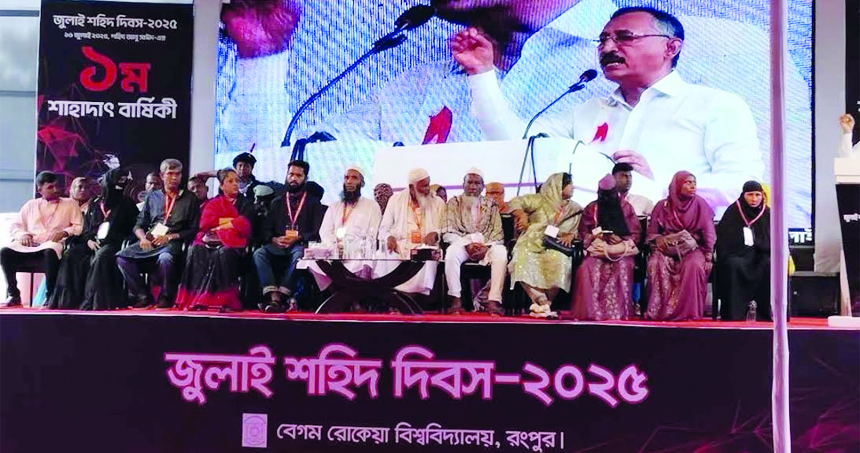 শহীদদের প্রতি সম্মান জানাতে রংপুরের বেগম রোকেয়া বিশ্ববিদ্যালয়ে (বেরোবি) অনুষ্ঠিত হলো এক ব্যতিক্রমী আয়োজন। ‘জুলাই শহীদ দিবস’-২০২৫ উপলক্ষে আয়োজিত আলোচনা সভায় শহীদ আবু সাঈদসহ ২২ শহীদ পরিবারের সদস্যরা মঞ্চে আসন গ্রহণ করেন, আর নিচের সারিতে বসেন অন্তর্বর্তী সরকারের উপদেষ্টা ও আমন্ত্রিত অতিথিরা।