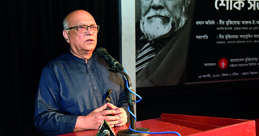 শুক্রবার (১৫ আগস্ট) চট্টগ্রাম নগরের শিল্পকলা একাডেমি মিলনায়তনে বাংলাদেশ মুক্তিযোদ্ধা সংসদ চট্টগ্রাম মহানগর ইউনিট কমান্ড আয়োজিত বীর মুক্তিযোদ্ধা লে. কর্নেল (অব.) মোহাম্মদ জিয়া উদ্দিন আহমেদ বীর উত্তমের স্মরণ সভায় প্রধান অতিথির বক্তৃতায় তিনি এসব কথা বলেন।