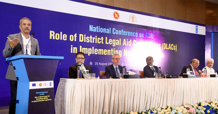 সোমবার (২৫ আগস্ট) রাজধানীর হোটেল ইন্টারকন্টিনেন্টালে ‘ন্যাশনাল কনফারেন্স অন এডিআর : রোল অব ডিস্ট্রিক্ট লিগ্যাল এইড কমিটিস ইন ইমপ্লিমেন্টিং নিউ লেজিসলেশন্স’ শীর্ষক সভায় সভাপতির বক্তব্যে তিনি এসব কথা বলেন।
