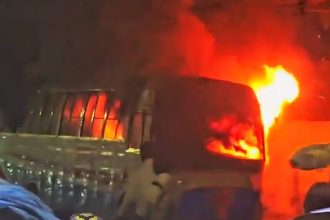 রাজধানীর সূত্রাপুরে বাসে আগুন