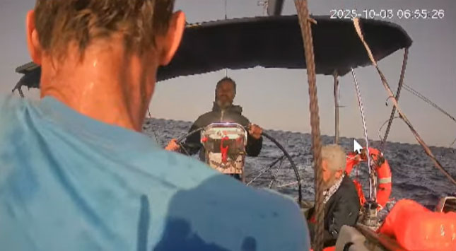 অবরোধের দেয়াল পেরোতে গাজা অভিমুখে এগিয়ে যাচ্ছে ‘গ্লোবাল সুমুদ ফ্লোটিলা’ নৌবহরের শেষ জাহাজটি। (ছবি : গ্লোবাল সুমুদ ফ্লোটিলা লাইভস্ট্রিম)