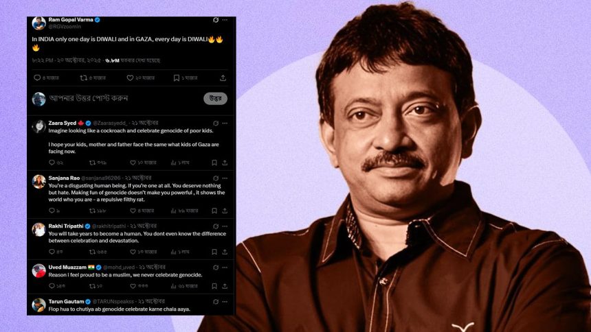 ভারতের বিতর্কিত চলচ্চিত্র নির্মাতা রামগোপাল ভার্মা আবারও আলোচনায়। দীপাবলির শুভেচ্ছা জানাতে গিয়ে গাজার পরিস্থিতি নিয়ে ব্যঙ্গাত্মক মন্তব্য করায় সামাজিক মাধ্যমে তীব্র সমালোচনার মুখে পড়েছেন তিনি।
