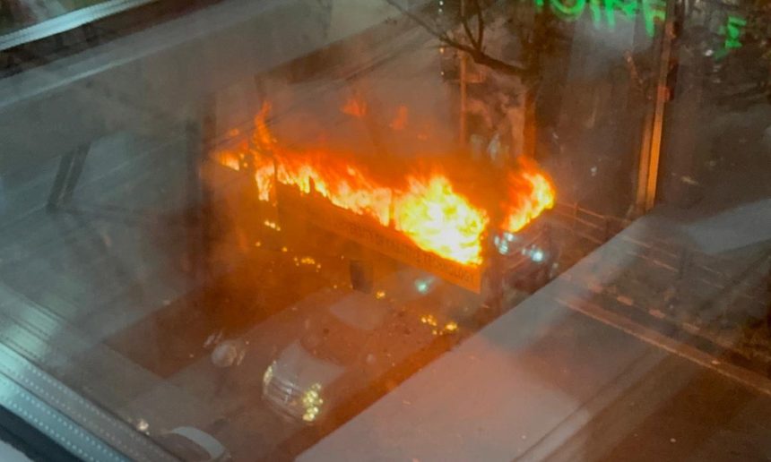 রাজধানীর ধানমণ্ডিতে ল্যাবএইড হাসপাতালের সামনে একটি বাসে আগুন লেগেছে। আগুন নিয়ন্ত্রণে কাজ করছে ফায়ার সার্ভিসের দুটি ইউনিট। সোমবার (১০ নভেম্বর) সন্ধ্যা সাড়ে ৭টার দিকে খবর পেয়ে ফায়ার সার্ভিসের দুটি ইউনিট ঘটনাস্থলে পৌঁছে আগুন নিয়ন্ত্রণে কাজ শুরু করে।