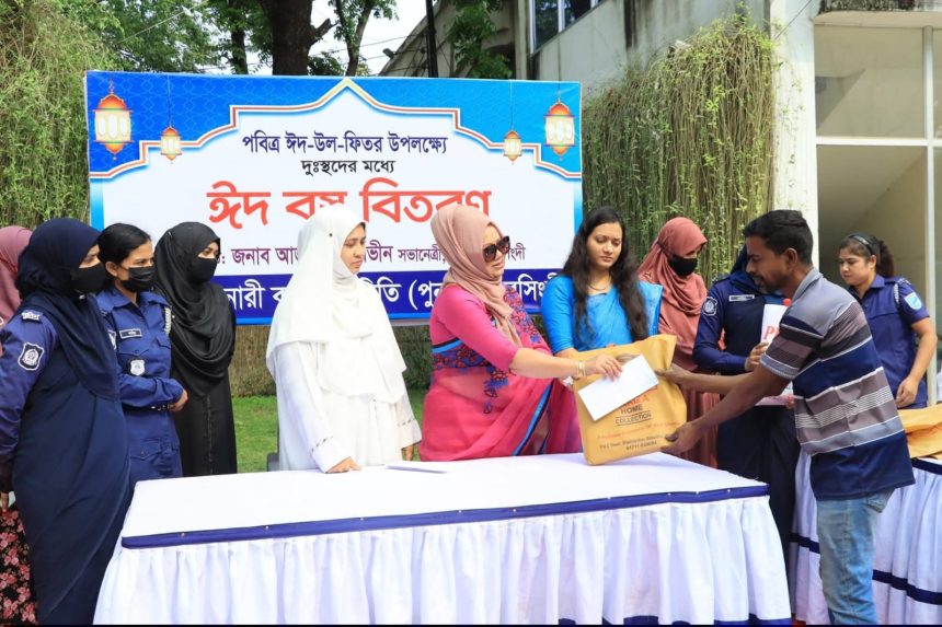 পবিত্র ঈদুল ফিতর উপলক্ষে নরসিংদীতে অসহায় ও দুঃস্থ মানুষের মুখে হাসি ফোটাতে ঈদ বস্ত্র বিতরণ করেছে পুলিশ নারী কল্যাণ সমিতি (পুনাক), নরসিংদী।