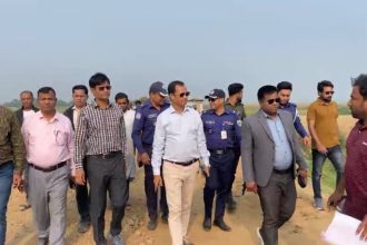 সুনামগঞ্জে ফসল রক্ষা বাঁধের কাজ পরিদর্শনে এমপি কামরুল