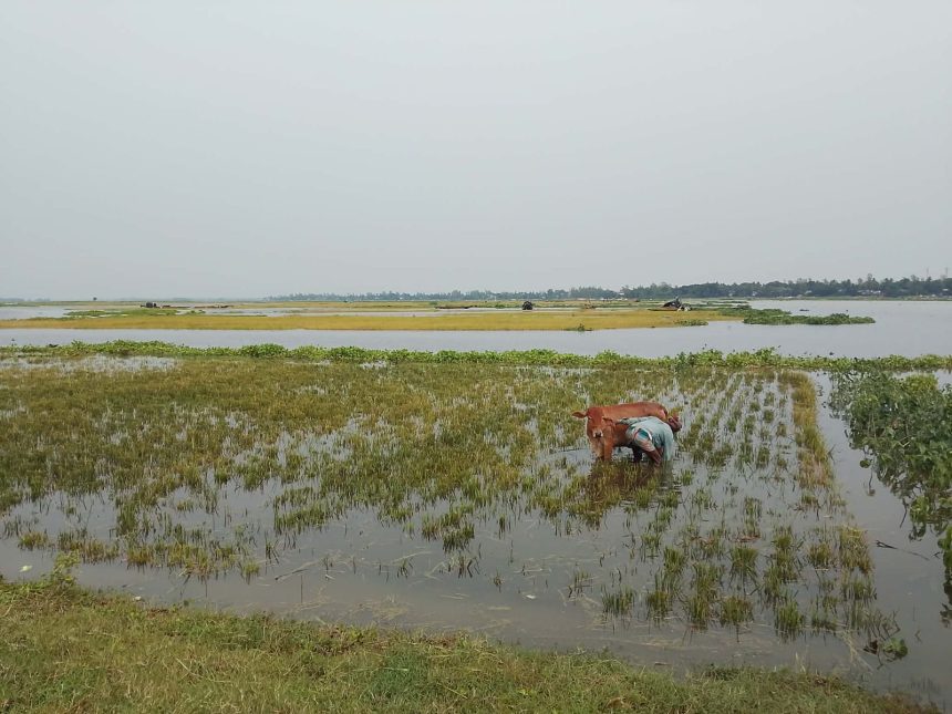 স্থানীয় কৃষক আনজব আলী জানান, “আমার ছয় কানি জমি পানির নিচে চলে গেছে। জমিতে পানি থাকায় মেশিন দিয়ে ধান কাটা যাচ্ছে না, আবার শ্রমিকও পাওয়া যাচ্ছে না।”